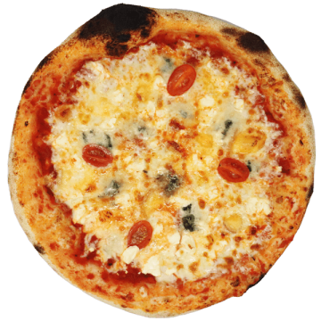 Sauce tomate, fromage, tomates, oignons, poivrons, champignons, olives